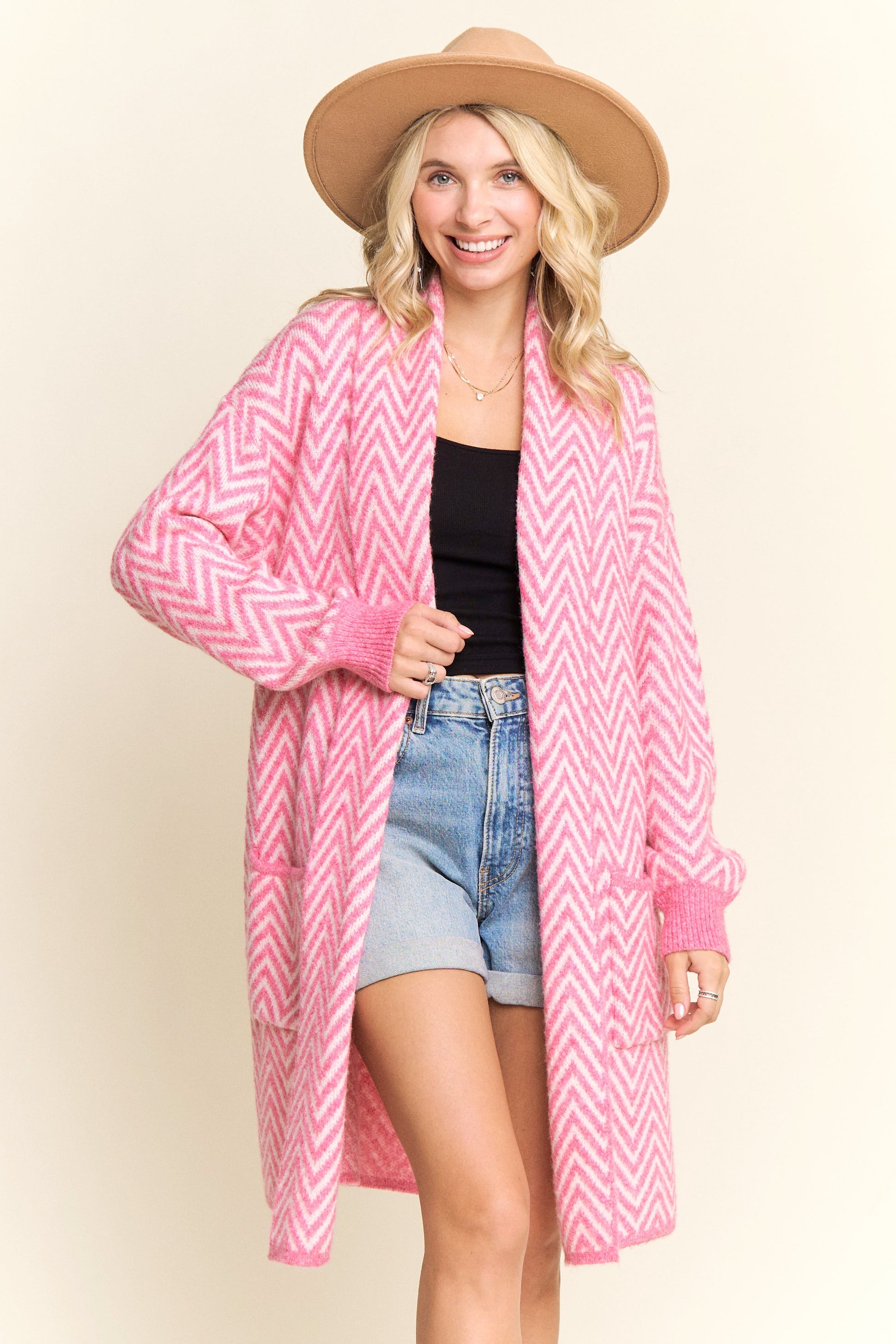 Chevron Sweater Cardigan With Pockets