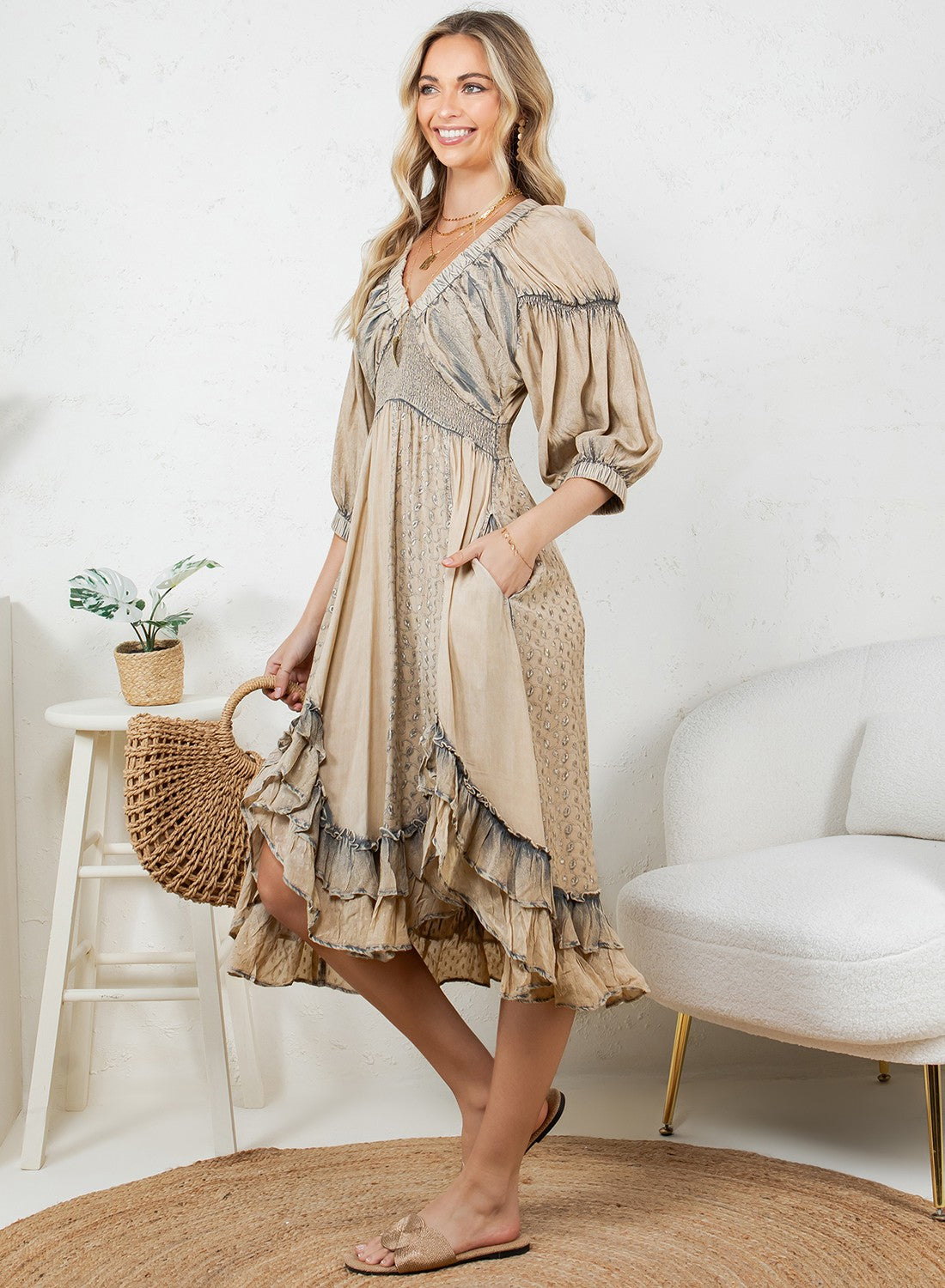 Effortless Elegance Sheared & Elastic V-neck Dress