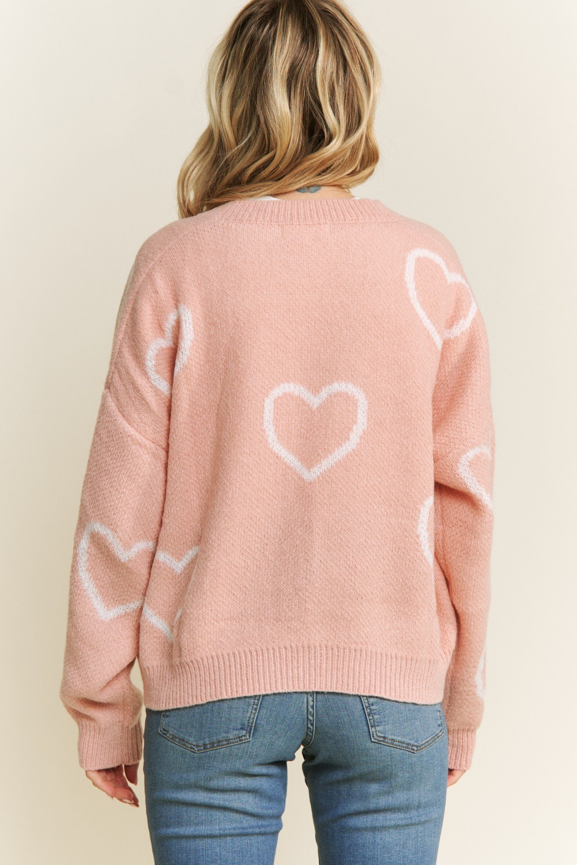 Jacquard Heart Pattern Classic Cardigan