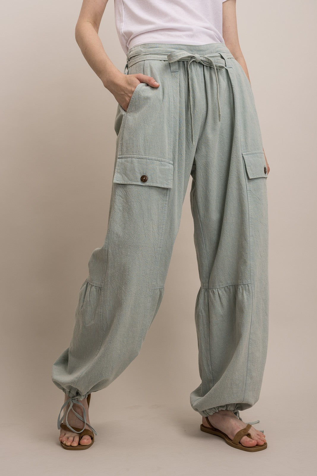 🌿 Jogger-style cinched ankles with ties = so cute with sandals, sneakers, or wedges
