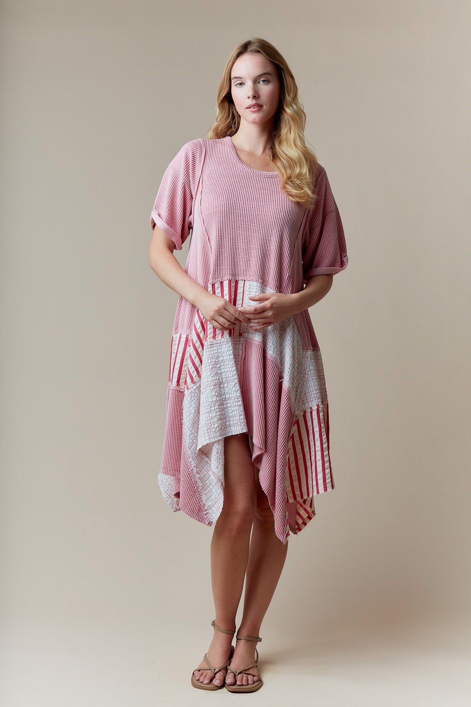 Stripe & Plaid Pattern Oversized Dress